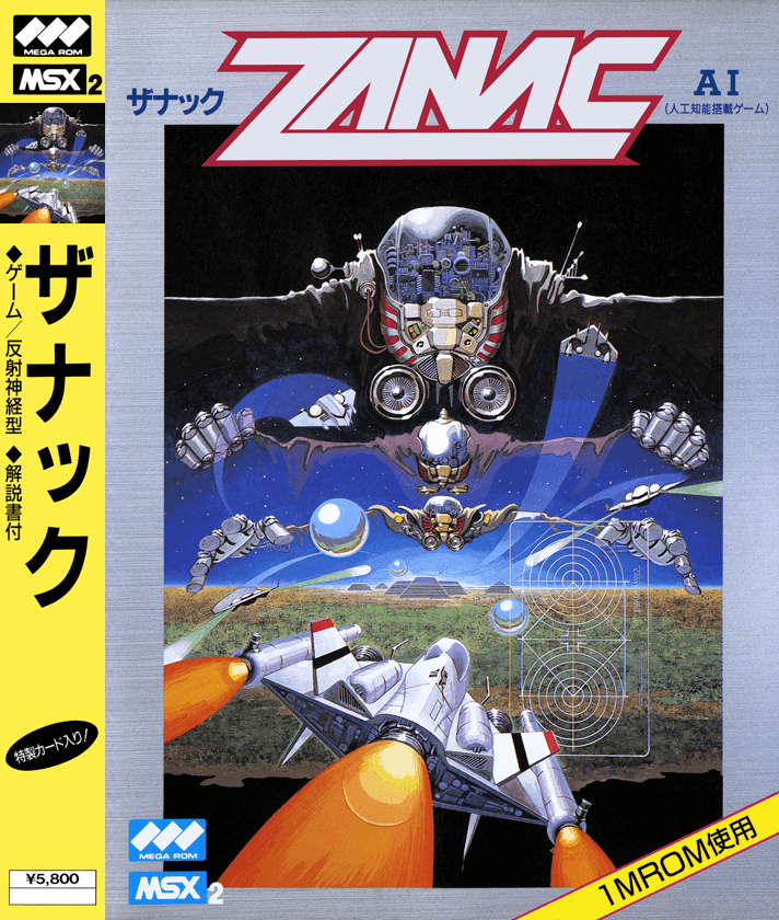 1986年に発売された『ZANAC EX』は、縦スクロールのSFシューティングゲームです。ストーリー的にはMSX版『ZANAC』の後日譚という位置づけとなっており、プレイヤーは最新鋭AFX-6502“ザナック”を操作して有機知性体と戦います。 AFX-6502“ザナック”は、ショットと特殊武器を装備しており、戦闘中に登場する数字チップを取ることで特殊弾を切り替えたり、同じチップを連続して取れば特殊弾を強化したりできます。特殊弾には、並んだ敵をまとめて倒せる貫通弾、4方向に飛ばせる全方位弾といった、シューティングゲームではおなじみのものから、自機を守るバリアー、左右に高速移動する振動弾、自機の周りを高速回転する回転弾などバリエーションは豊富。状況に応じて使い分けるもよし、得意な特殊弾を徹底的に強化して戦うもよし、あなたのプレイスタイルに合わせて楽しむことができます。 また本作を語る上で外せないのが“ALC(自動難易度調整機能)”。本作では、戦いの進め方によって敵の攻撃が激しさを増したり、逆に弱まったりします。例えば敵の要塞を破壊したり、偵察機を撃破できると敵の攻撃が弱まるのです。これにより毎回ゲームの展開が変わり、新鮮な感覚でゲームを楽しむことができます。 ちなみに『ZANAC』には、いくつかのバージョンがあり、オリジナルは『ZANAC(MSX版)』ですが、それを大幅にアレンジしたのがFC版。それをMSX2に移植したものが、本作『ZANAC EX』となります。