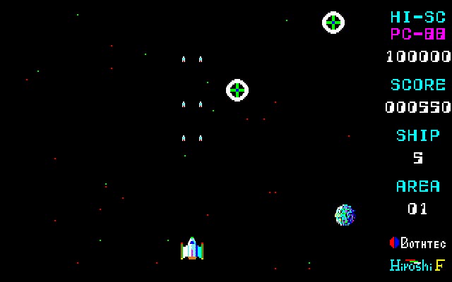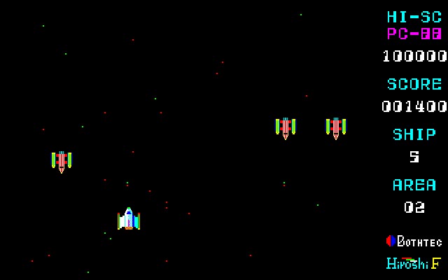 本作は1984年にボーステックからリリースされた縦スクロールのシューティングゲームです。プレイヤーは愛機VICTOPEを操って、次々と登場する敵を撃墜しつつ、時価$1000億と伝えられるダイヤモンドを探す冒険をすることになります。