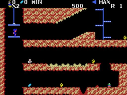 ゲームの評価としては、ちょっとした段差から落下すると主人公は倒れてしまうこともあって、揶揄されたり、不当な評価をされたりしているようですが、80年代中期のPCゲームとして考えれば、それほど群を抜いた難しさではなかったというのが事実です。そういう意味では、当時を知るレトロゲームファンにとってのスペランカーの復刻は、少々違う見方になるのかもしれません。
