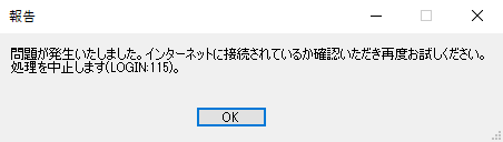 - ID・PW(パスワード)の認証に失敗すると以下のダイアログが表示されます。