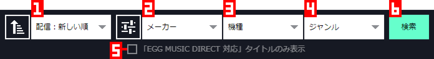 - チェックを入れると「EGG MUSIC DIRECT」対応ゲームで絞り込みます。