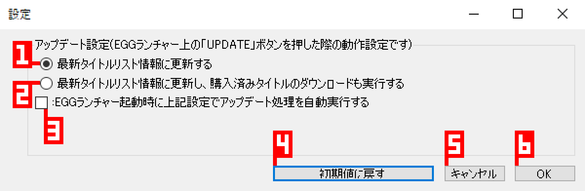 - チェックボックスがONの場合、上記処理を毎回アプリケーション起動時に行います。