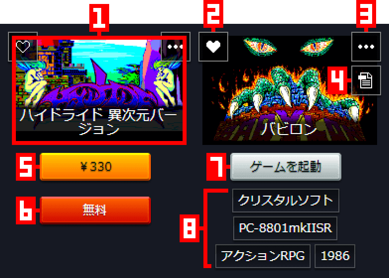 - 購入していない無料ゲームです。クリックすると詳細画面に移動します。