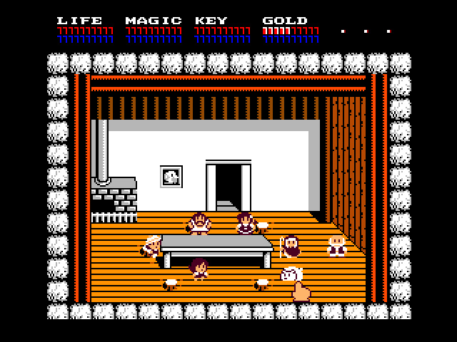 おばあさんがそう言って、壁に掛かったディルギオスの絵を指差したとき、ペットのポチが何かとがったものをくわえて扉から飛び込んできました。なんと、それは地中深くに埋められたはずのディルギオスのウロコだったのです! そのウロコを見たお父さんとお母さんは、ディルギオスの復活を感じとり、地下のダンジョンへと入る準備を始めます。そう、魔法使いの子孫である彼らの本当の仕事は、復活したディルギオスを倒すことだったのです。