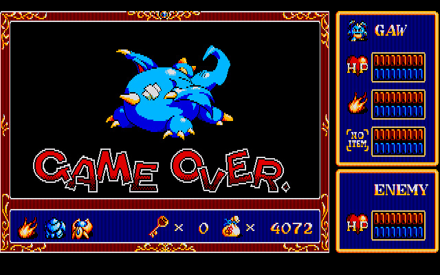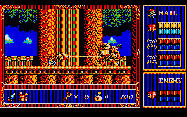 ゲームは剣主体で接近戦が得意のメイルの他、ゲームを進めると遠距離戦を得意とする魔法使いの弟子タットや、滞空時間の長いジャンプ特性をもつ魔獣ガウの2匹+1匹が仲間になり、これらを上手に使い分けて進めていくことになる。