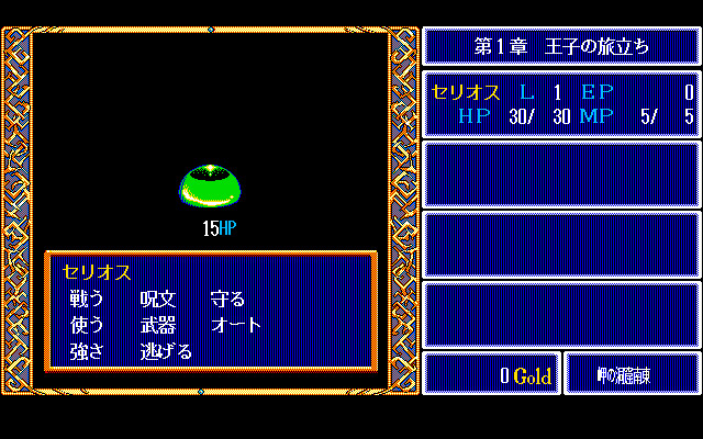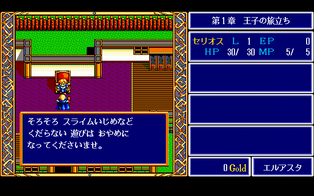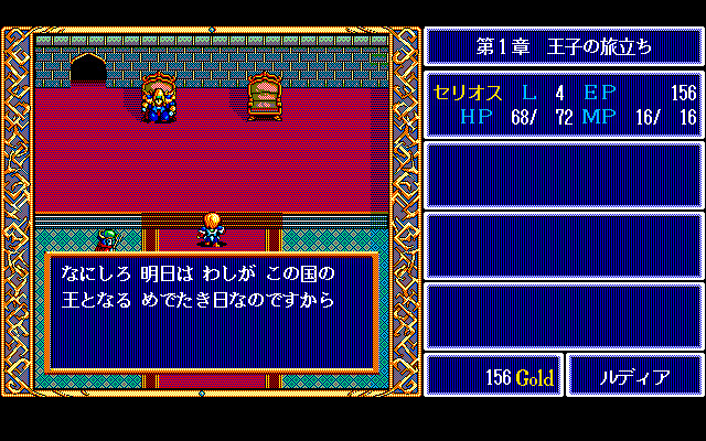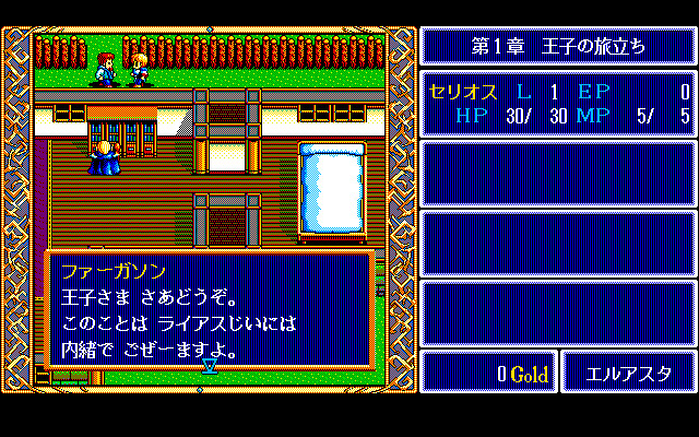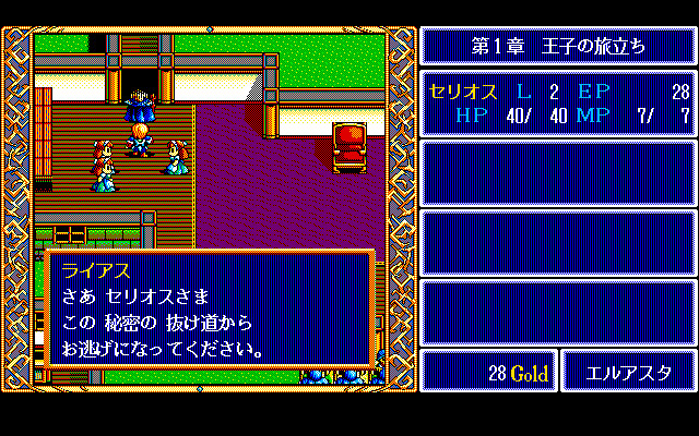 それから10年後。サースアイ島のエルアスタに預けられていたセリオスは、世話係のライアスの目を盗んでは町から抜け出し、草原でのスライムいじめに熱中するやんちゃな若者に成長していた。約束された王位継承の儀を2ヶ月後に控えたある日、10年前の事件の再現かのように、エルアスタの町がモンスターの群れに襲撃されたのである。セリオスはどうにか逃げのびたものの、ライオスと侍女たち、そしてエルアスタを守っていた3人の兵士たちが、彼を逃がすための囮として後に残るのだった。岬の洞窟を抜け、何とか王都へと逃げのびるセリオス。しかし、彼を待ち受けていたのは摂政であるアクダムの裏切りだった。